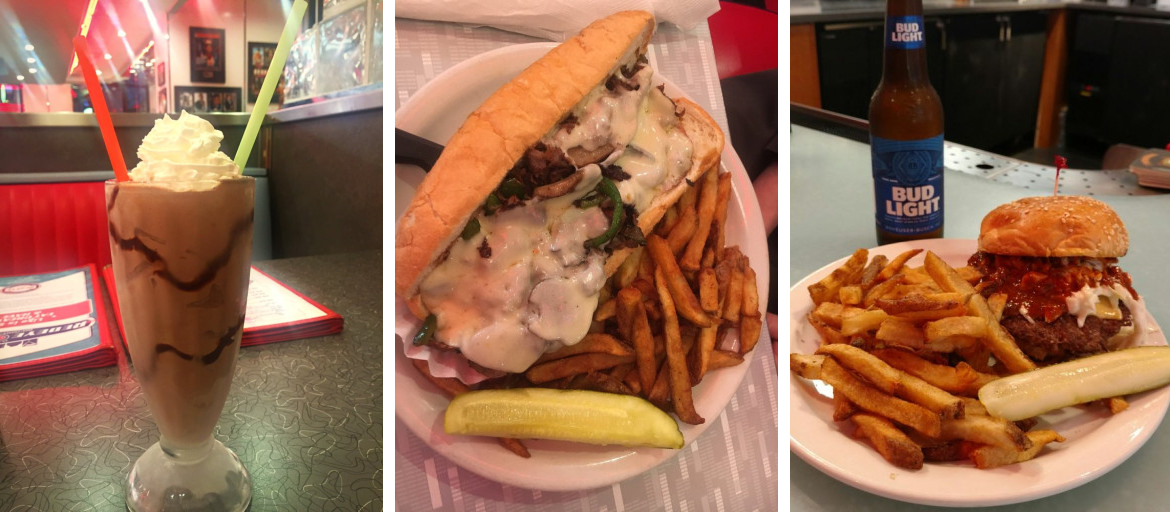 We went after a concert, so it was about midnight. There's security at the door and then you have to wait for the hostess to come get you before you go inside. The staff was all very friendly and working hard. The onion rings were awesome, they actually had seasoning on them. The strawberry milkshake was packed full of flavor-no cherry on top though lol. The Turkey and Swiss was average and the waffle fries were good. The root beer float never came, but it was on my ticket at checkout. It was removed, but the 10% discount that I showed was never applied. $27 for onion rings, shake and sandwich (with fries).